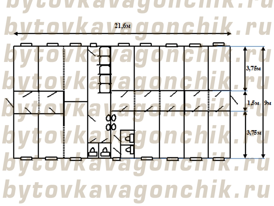 3.Блок -контейнер  БК 9,0*2,4*2,5 -1шт.      (душ/туалет)