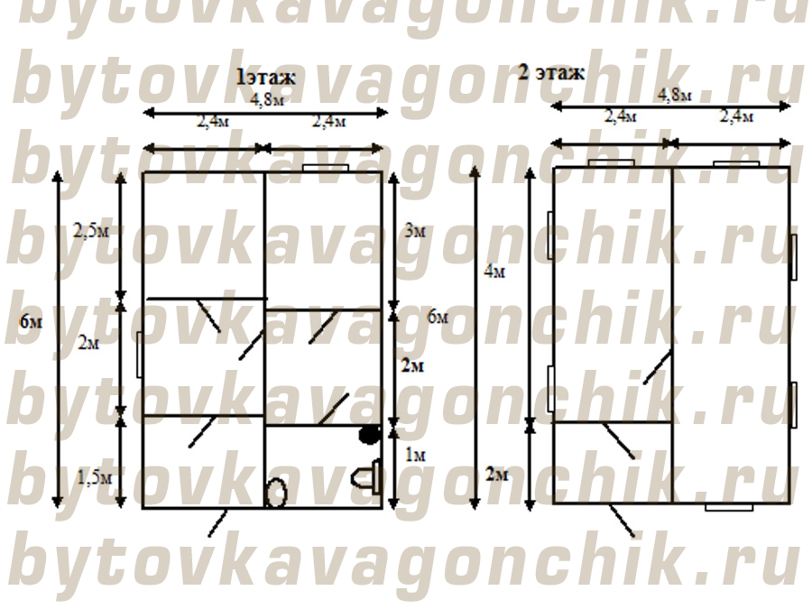 2. Блок –модуль  6,0*4,8*2,5   из  БК 6,0*2,4*2,5 -2шт.     (2 этаж)