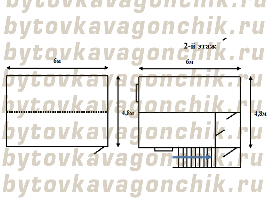 2.    Блок-модуль 6,0*4,8*2,5м (из БК 6*2,4*2,5 – 1шт.) – 1шт. – 2-й этаж.
